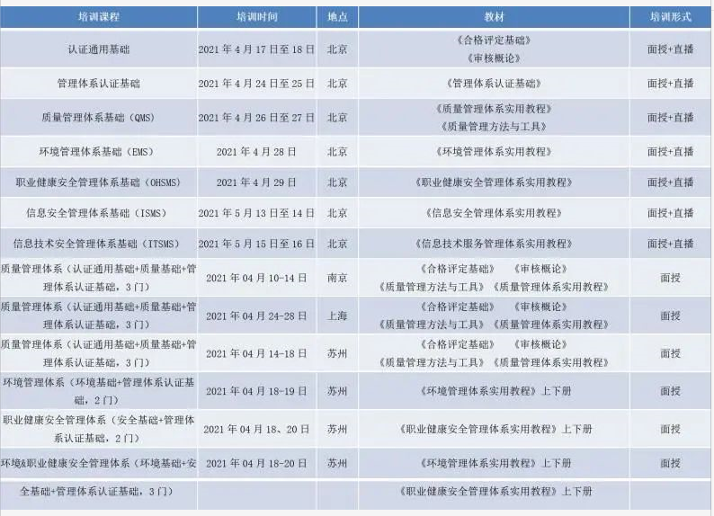 2021年CCAA審核員考前沖刺班招生!