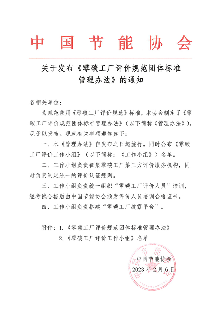 關于發(fā)布《零碳工廠評價規(guī)范團體標準管理辦法》的通知